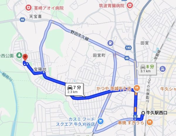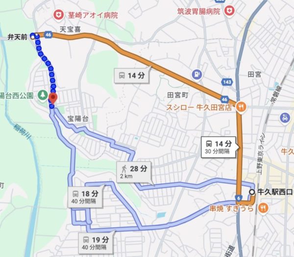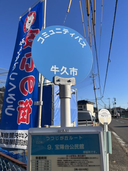 牛久駅からコミュニティバスの経路(宝陽台公民館前に下車)