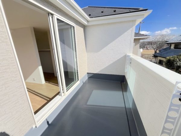 幅と奥行きのあるバルコニー、物干しが標準装備です。↓