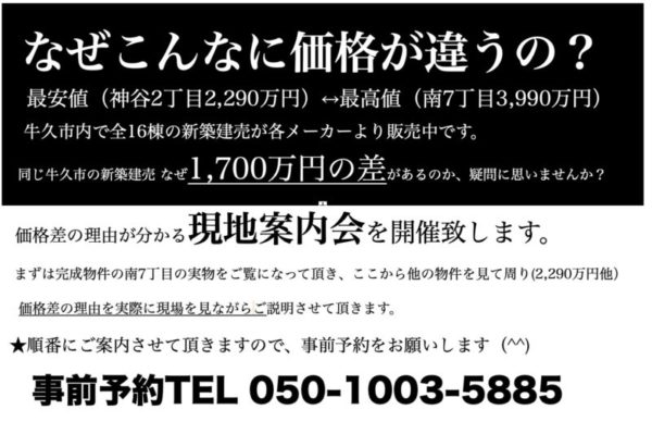 3月20日現在、牛久市最安値の新築!