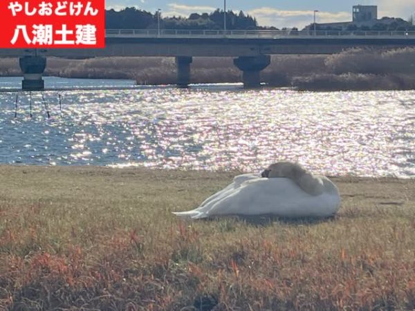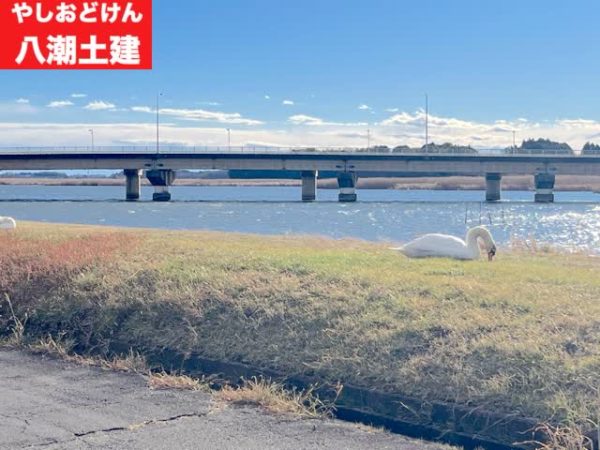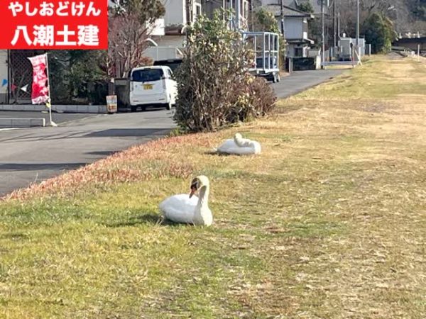 土手や牛久沼には白鳥や水鳥がいます。↓